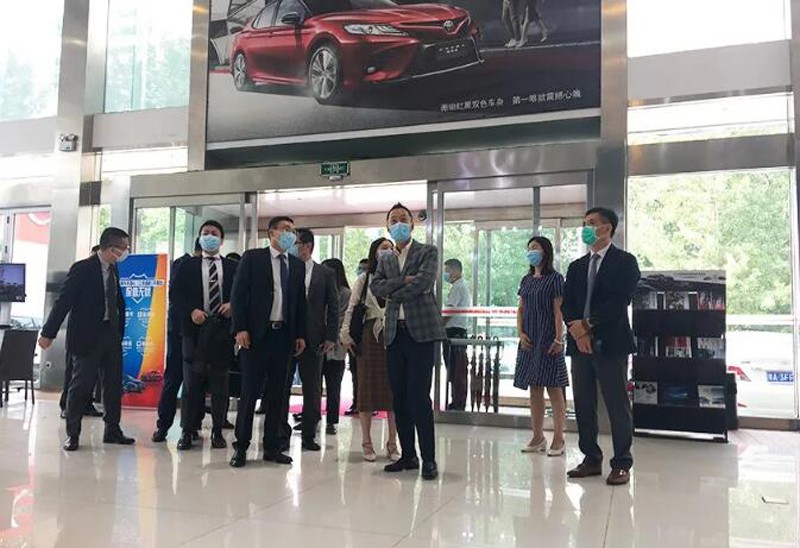 【智车网】2020年7月16日,广汽丰田副总经理藤原宽行一行赴富达花园路店调研。富达集团董事长郑岩先生、副总经理薛艳女士、富达诚意总经理赵斌先生带领团队接待藤原总到访。