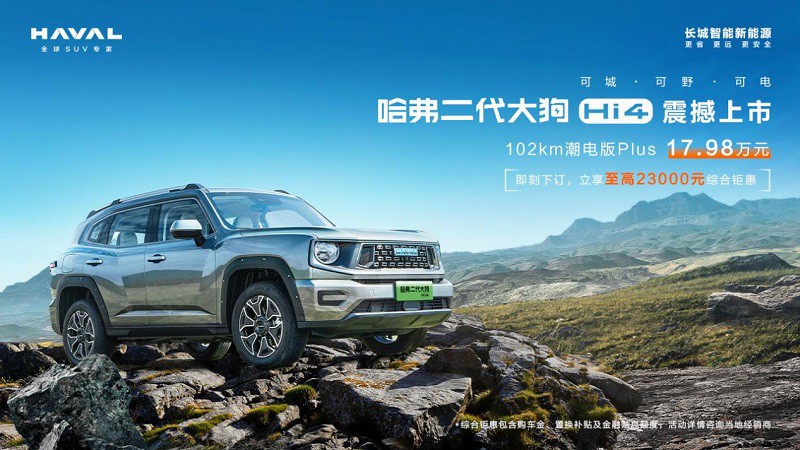 作为全球SUV专家,享有900万以上用户信任品质,哈弗品牌再度布局3/4刻度轻越野SUV市场,哈弗二代大狗Hi4版作为“可城可野可电”进阶的潮野王者,为哈弗品牌在新能源市场持续发力、精准突破提供了另一种可能性。不仅丰富了哈弗产品矩阵,还将进一步壮大狗品类序列,以全路况全场景的适应能力,陪伴用户与家人尽览世界风景。相信哈弗二代大狗Hi4版能够以强悍性能和越级品质再创新高度,轻松拓展用户从城市到户外的出行半径,成为当下新能源SUV市场里年轻用户的首选!