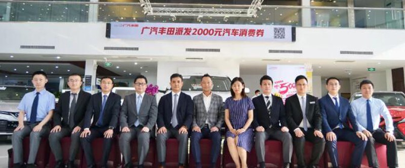 【智车网】2020年7月16日,广汽丰田副总经理藤原宽行一行赴富达花园路店调研。富达集团董事长郑岩先生、副总经理薛艳女士、富达诚意总经理赵斌先生带领团队接待藤原总到访。