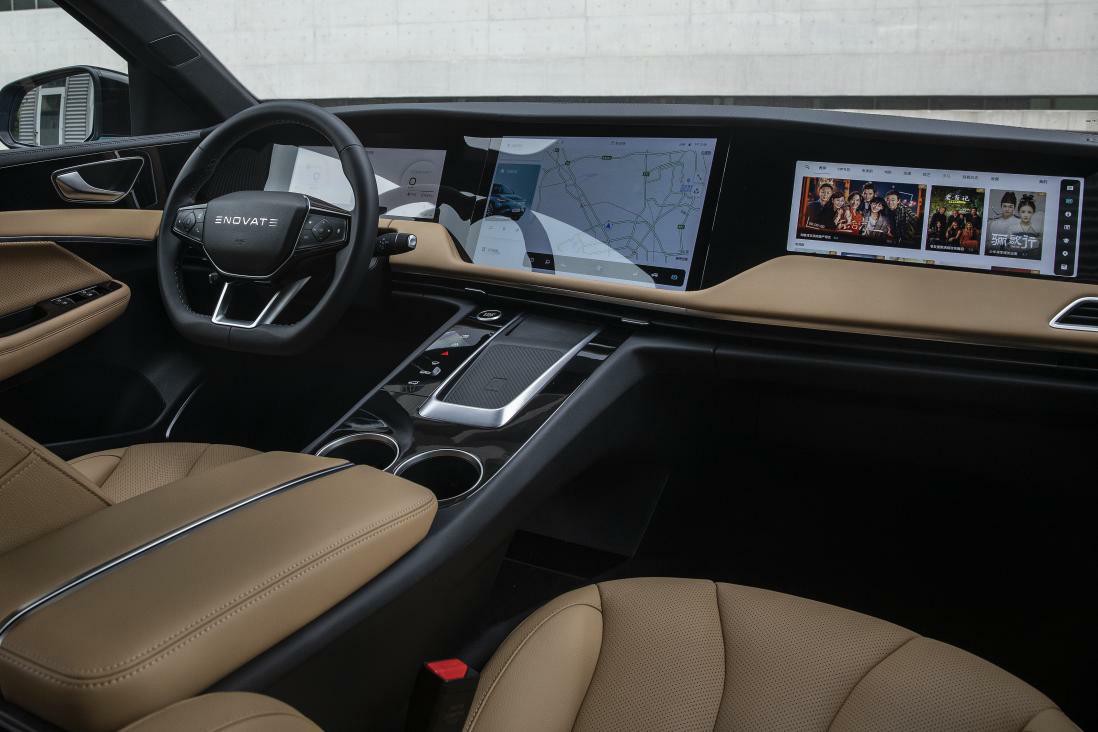 自在驾趣,随心所驭。天际ME7中控区域,采用当下流行的三联屏设计,15.6英寸超大中控屏,比大屏版的ipad pro的12.9英寸还大,科技感爆棚,让人忍不住想要“疯狂”操控一番;而驾驶舱配置12.3英寸高清全液晶智能仪表,凸显现代感;同时,天际ME7还为副驾驶区提供12.3英寸高清娱乐屏,而且两个后排座椅也配置12.8英寸后排双屏互联系统,让每一位乘客都能感受到“五屏互联”的智驾乐趣,如此现代、新潮的创新设计,甚至比特斯拉都要更新颖、前卫、科技。在旅途中,中控大屏可以看导航,副驾和后排的朋友自由娱乐,可以共享,也可独享,互不干扰,也不会影响到行车安全,“五屏互联”让旅途充满无限乐趣。