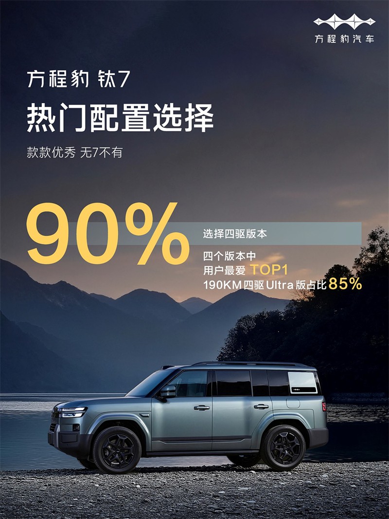 【智车网】比亚迪旗下专业个性化品牌方程豹汽车今日宣布,其最新力作——方程豹钛7在上市首个完整销售月内,实现了11,674台的惊人交付量。这一成绩不仅远超市场预期,更一举刷新了方程豹品牌自成立以来的新车型首月交付纪录,彰显出其在新能源硬派SUV市场的强大产品力与品牌号召力。